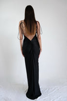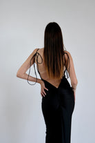 1. Abito Nero:Questo abito ha un taglio che segue la forma del corpo, accentuando le curve. Le spalline sono sottili e si legano sulla parte superiore, mentre il retro è caratterizzato da un profondo scollo che mette in risalto la schiena. La parte inferiore si allarga delicatamente, creando un effetto elegante e slanciato. Il tessuto è morbido e aderente, perfetto per serate sofisticate.